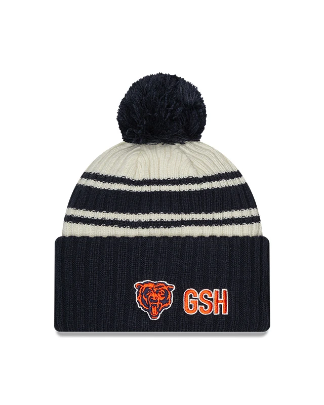 Be the first to review “Chicago Bears New Era 2022 Sideline Official Sport Cuffed Pom Knit Hat – Cream/Navy” Cancel reply